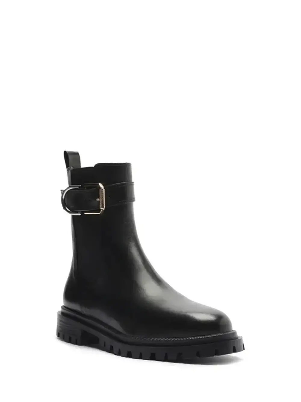 Black Leather Boot with Buckle