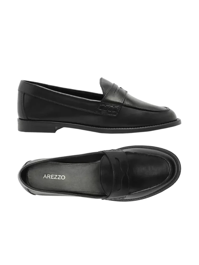 Black leather loafer. This Arezzo loafer combines elegance with classic lines that enhance this model.