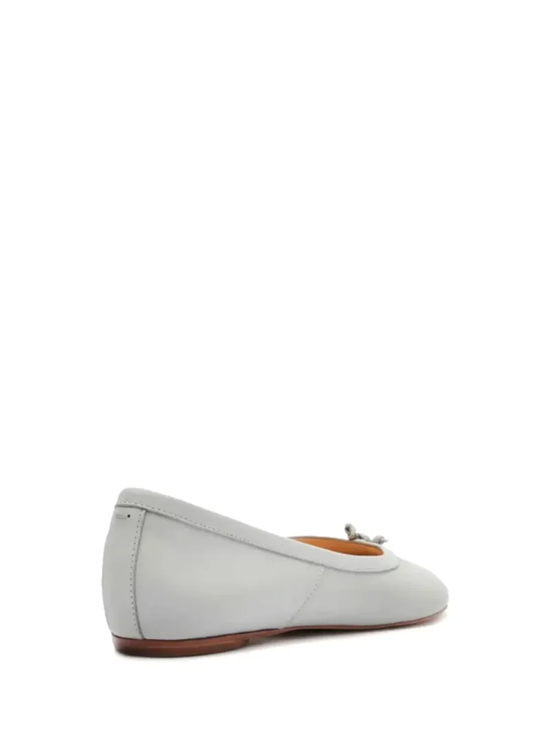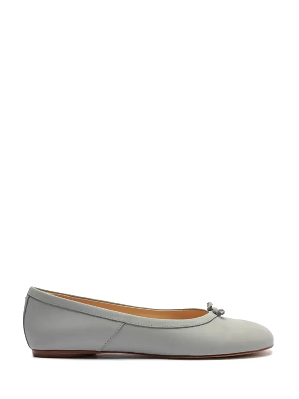 Sabrina em pele cinza e pormenor de nó. Confortável, fresh e fashion para completar o seu outfit em qualquer momento do seu dia. É o must-have deste Verão.