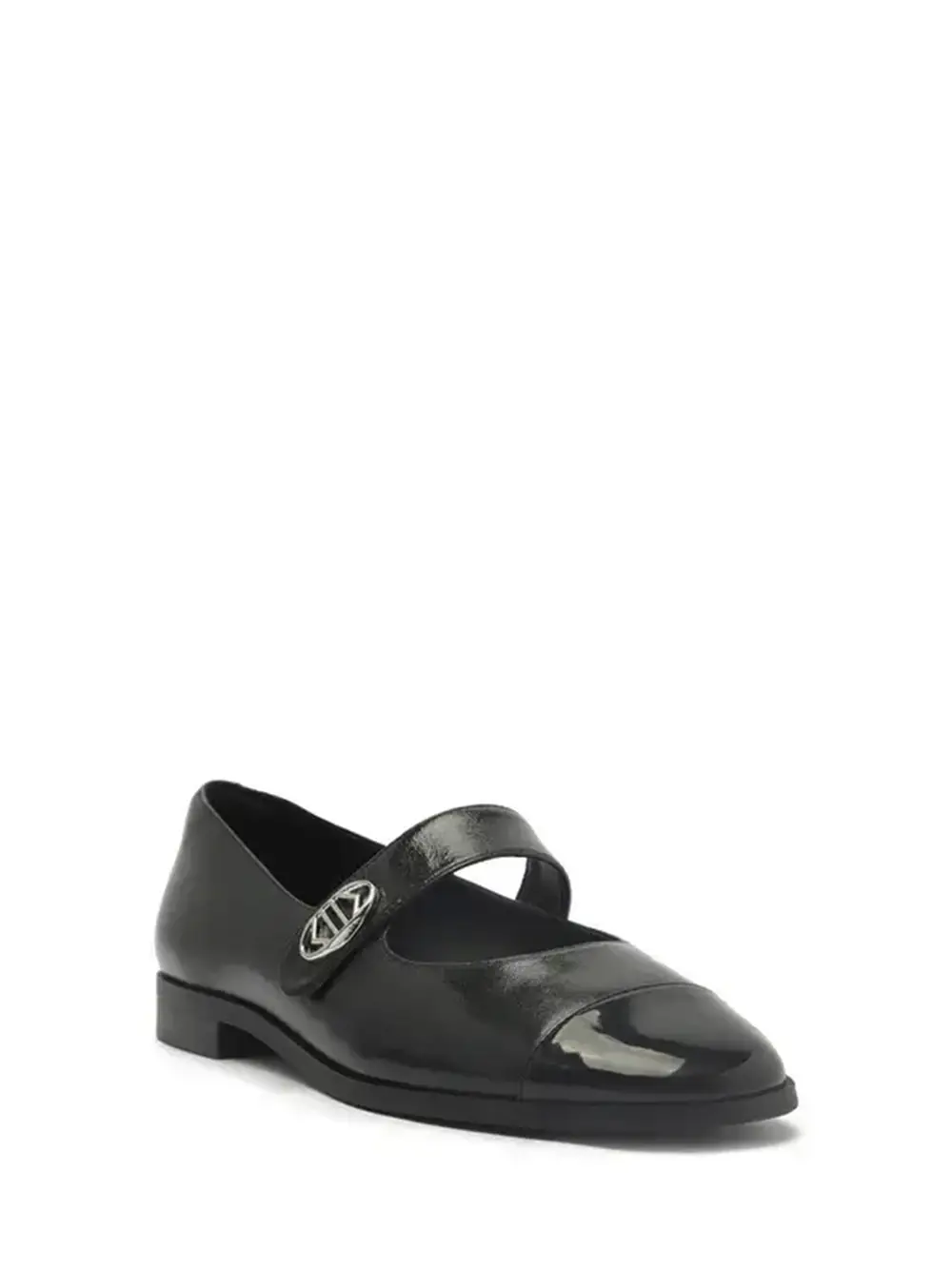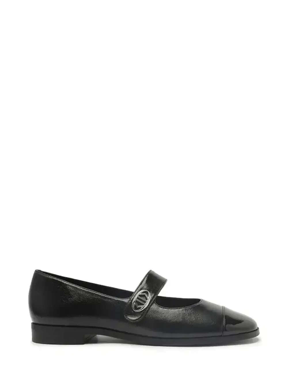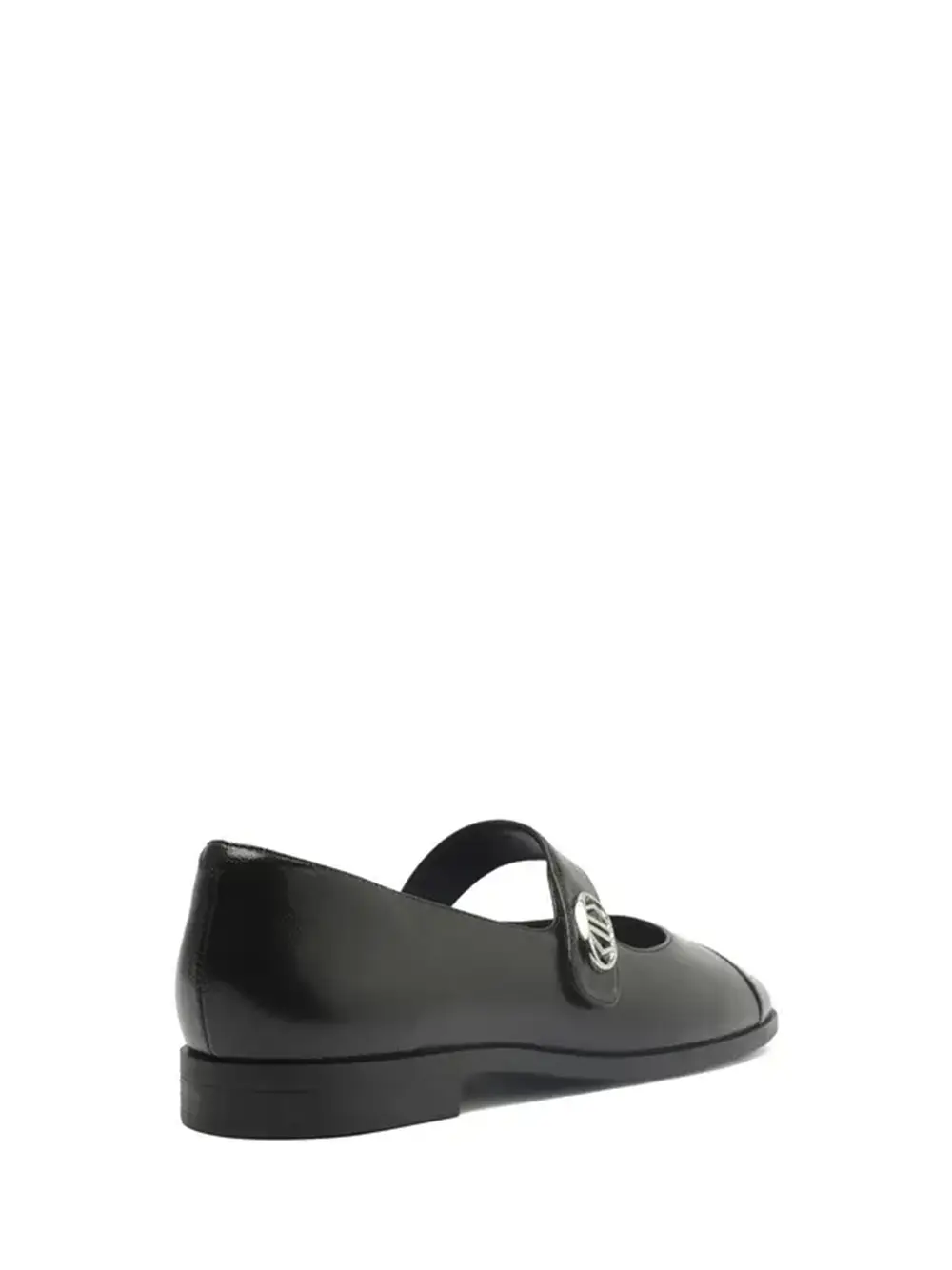 Black leather ballet flats with strap