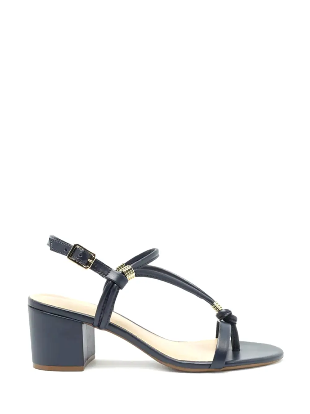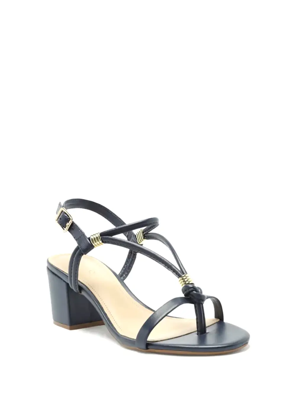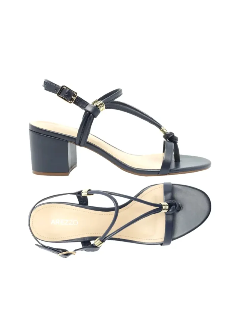 Sandália em pele azul escura e múltiplas tiras com pormenor em dourado. Esta sandália da Arezzo traz consigo a mistura da elegância com as linhas clássicas que enaltecem este modelo.