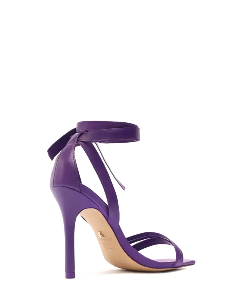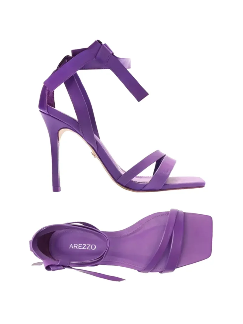 Sandália em pele roxa com múltiplas tiras e salto alto fino. Esta sandália da Arezzo traz consigo a mistura da elegância com as linhas clássicas que enaltecem este modelo.
