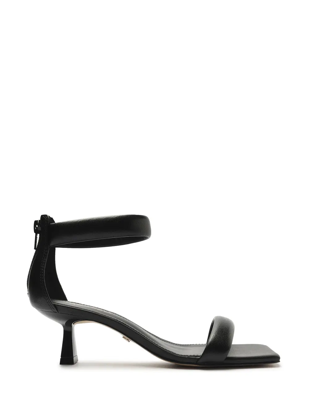 Black Leather Sandal with Puffer Straps