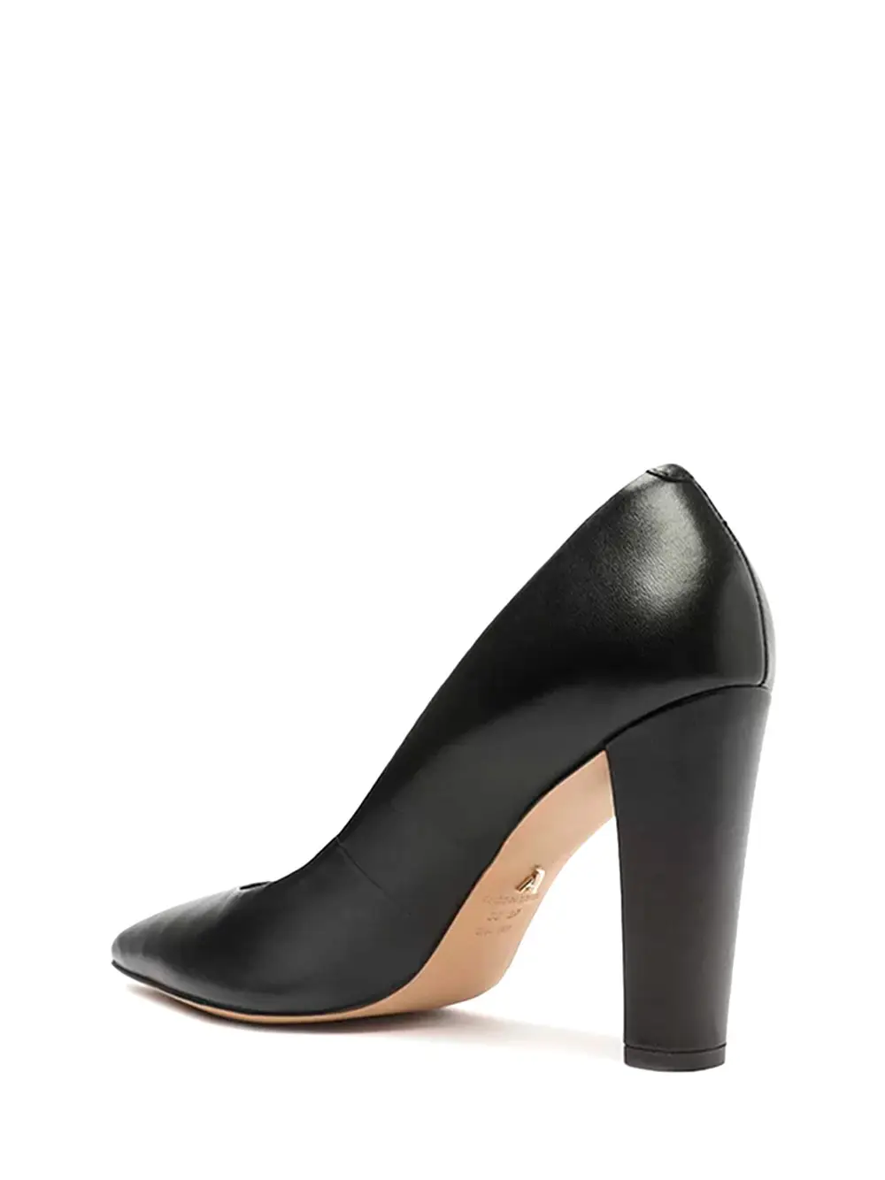 Scarpin preto em pele com biqueira fina e salto em bloco. Confortável, fresh e fashion para completar o seu outfit em qualquer momento do seu dia. É o must-have deste Verão.