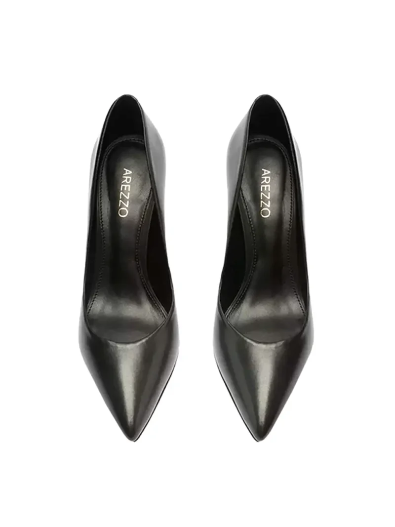 Scarpin Preto em Pele com Biqueira Fina e Salto em Bloco