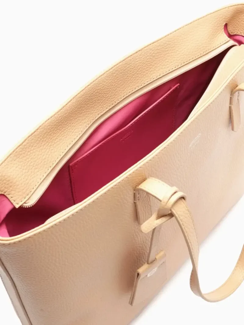 Mala shopper em pele beige. Este modelo clássico e versátil da Arezzo é ideal para o dia a dia de quem pretende aliar o prático ao elegante.