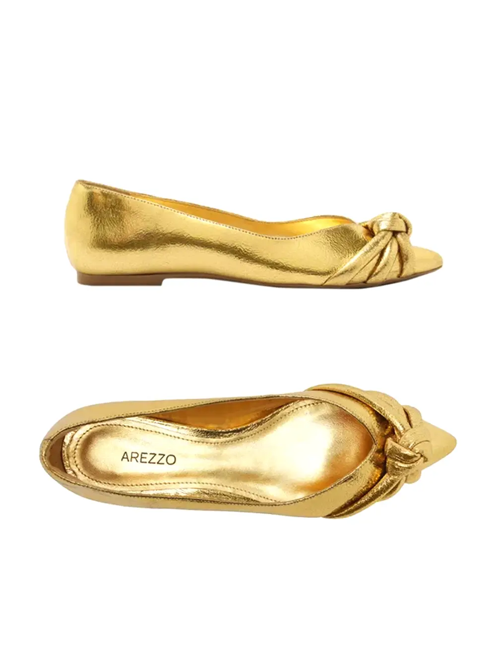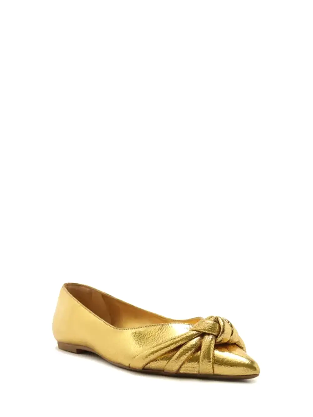 Sabrina em Pele Dourada com Biqueira Fina e Pormenor de Nó