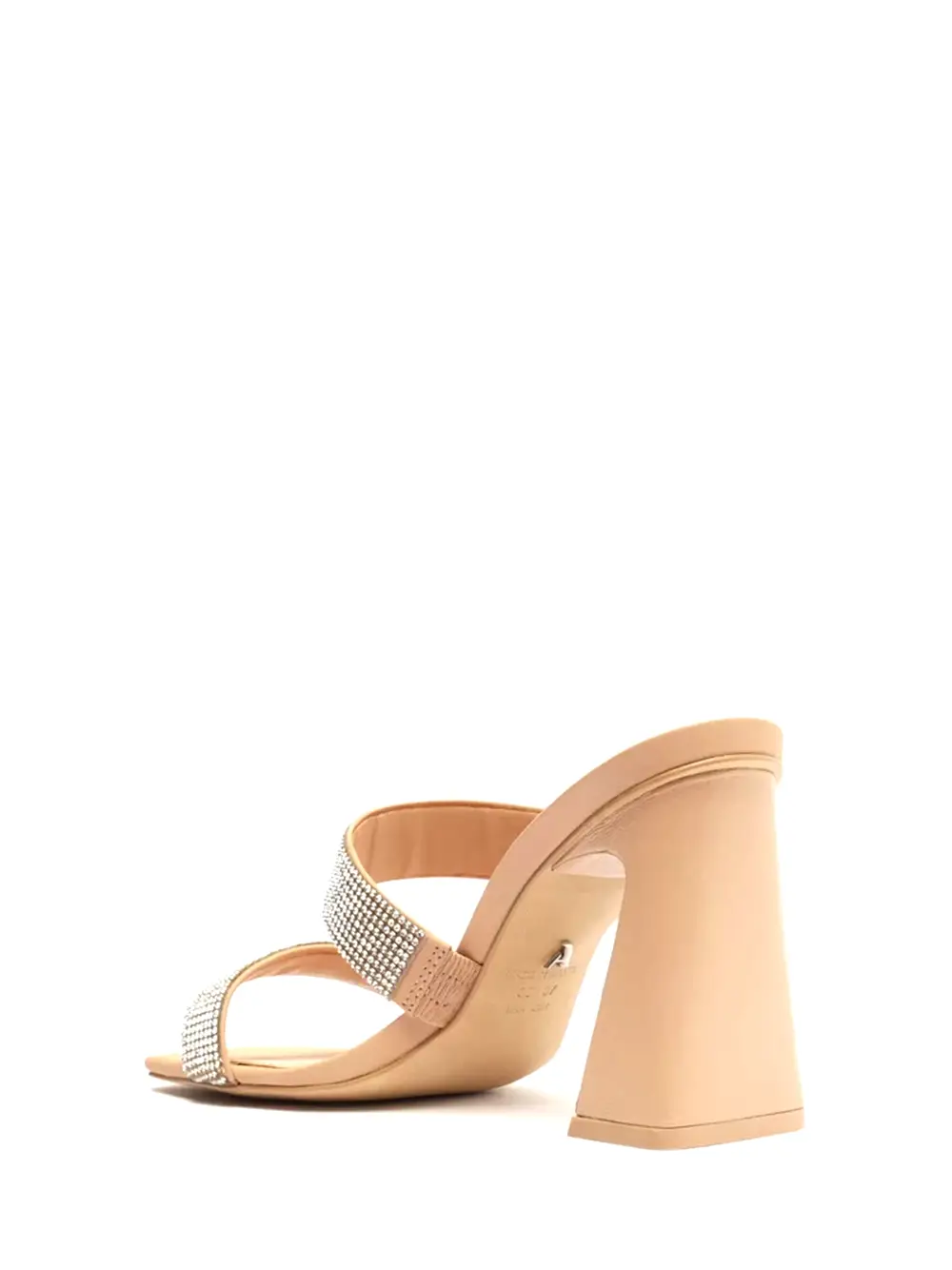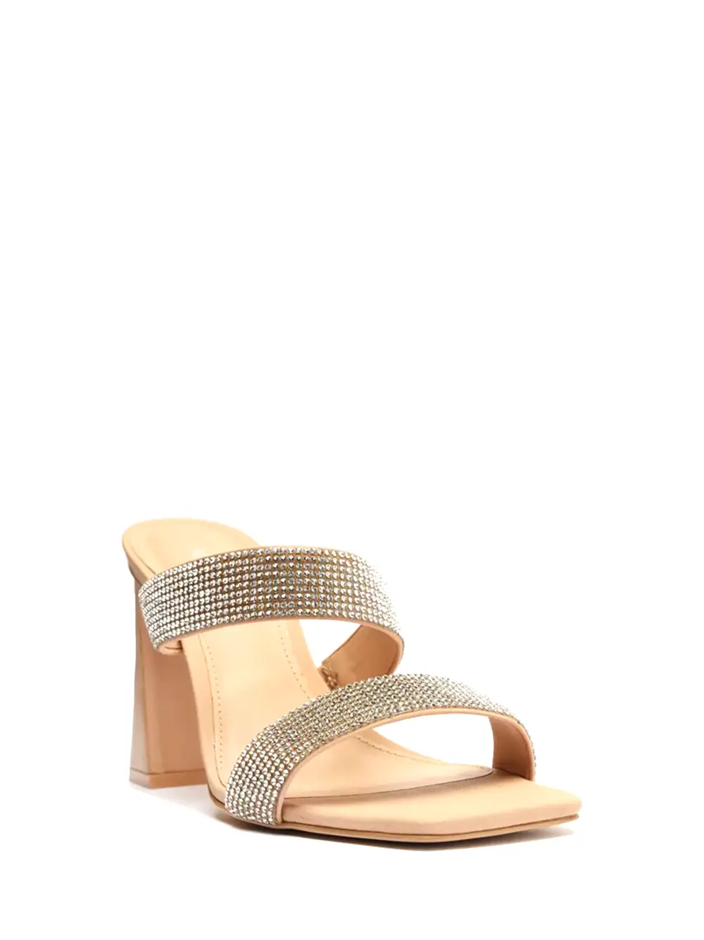 Sandália em Pele Beige com Duas Tiras e Aplicação de Cristais