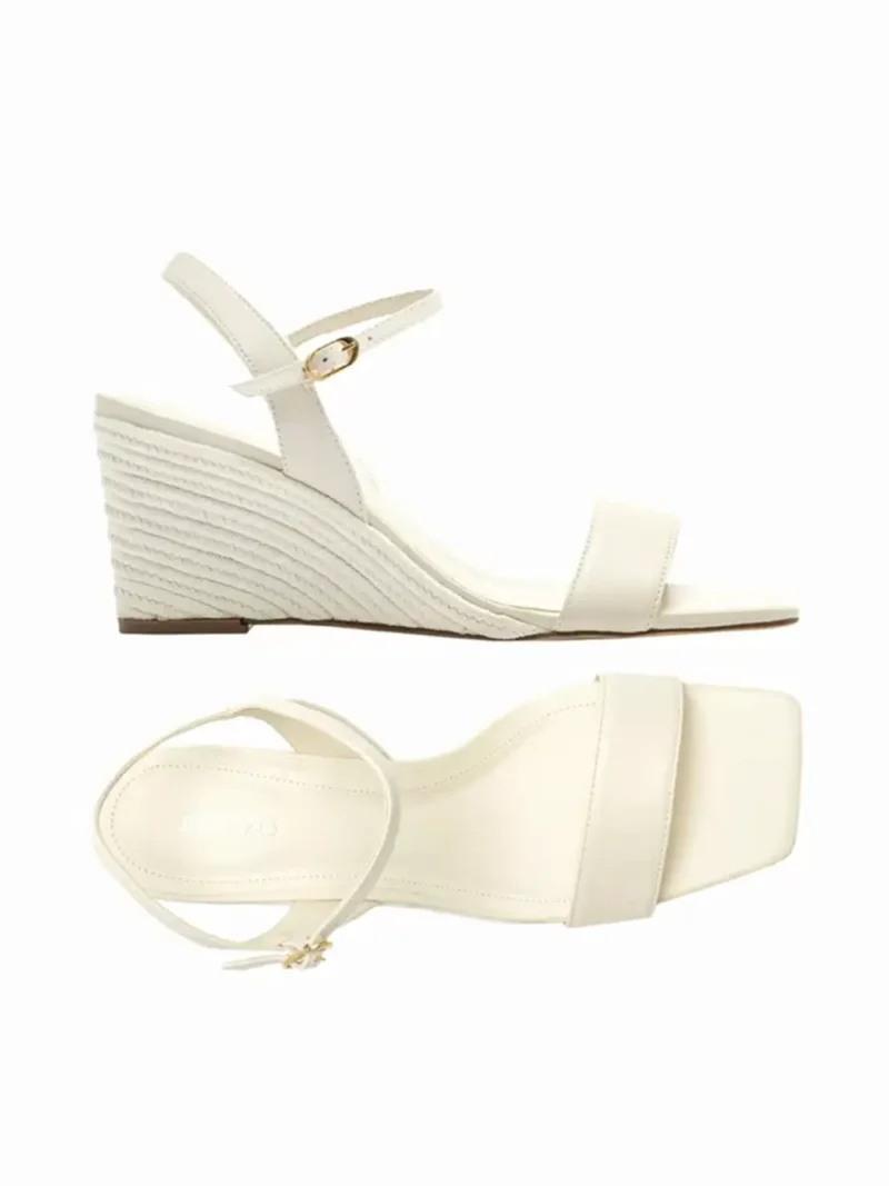Sandália em pele branca com tira única e salto cunha. Esta sandália da Arezzo traz consigo a mistura da elegância com as linhas clássicas que enaltecem este modelo.