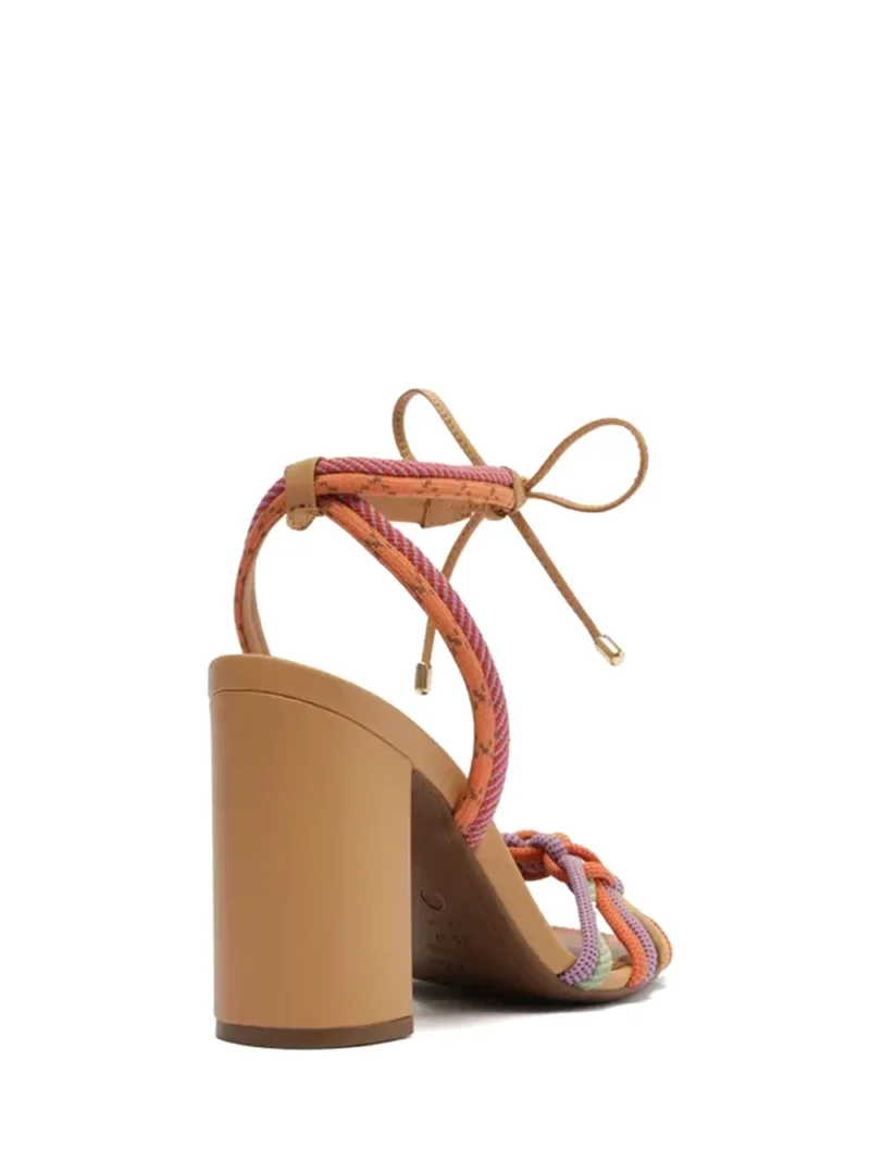 Sandália em Pele Camel e Múltiplas Tiras Coloridas