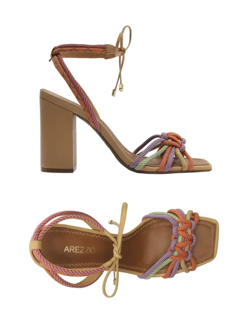 Sandália em pele camel e múltiplas tiras coloridas. Esta sandália da Arezzo traz consigo a mistura da elegância com as linhas clássicas que enaltecem este modelo.