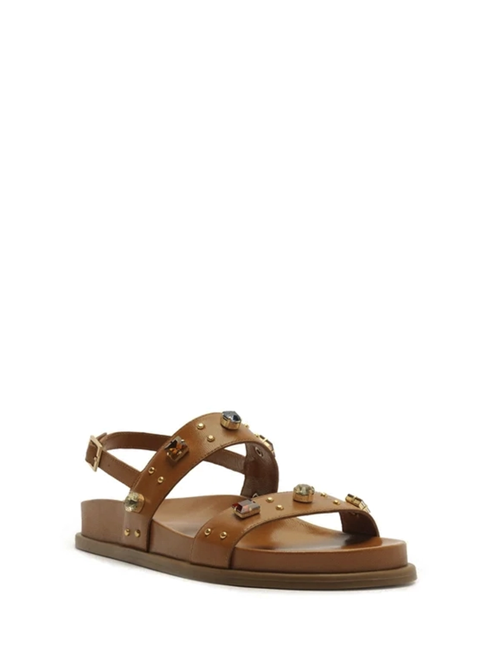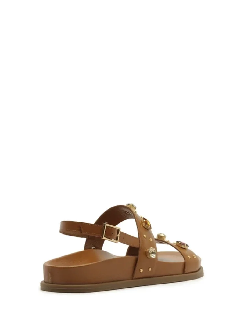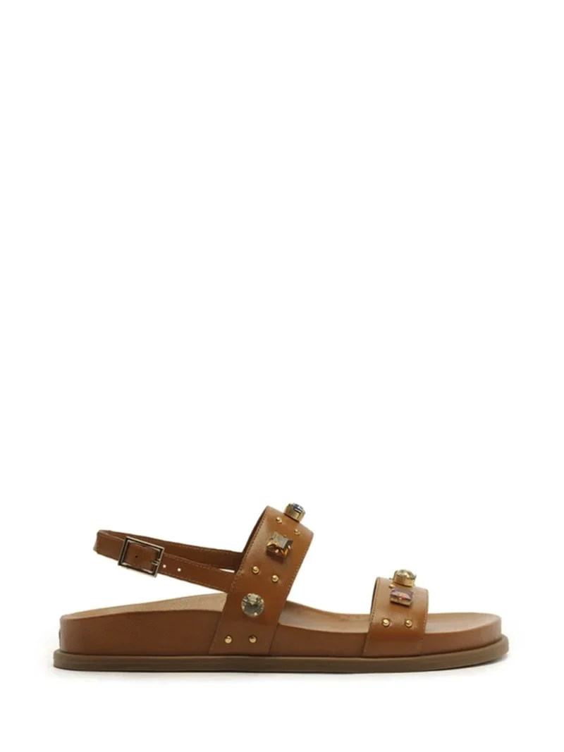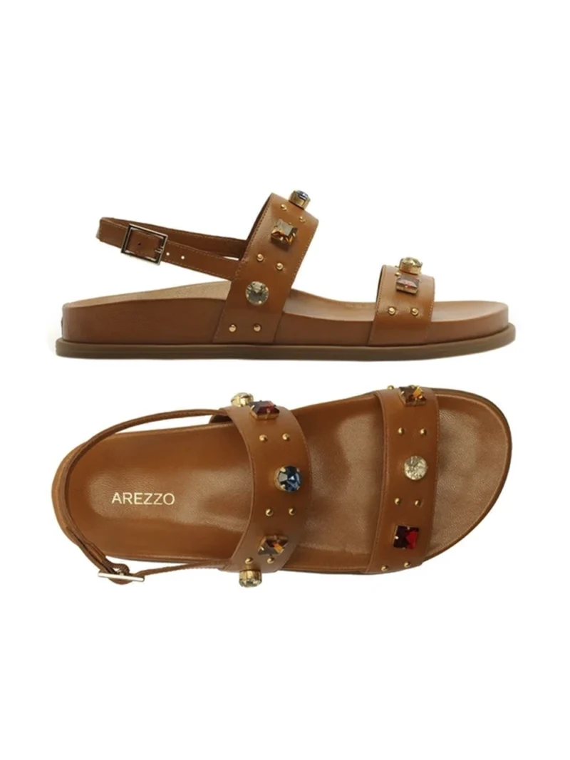 Sandália em Pele Castanha e Pedrarias