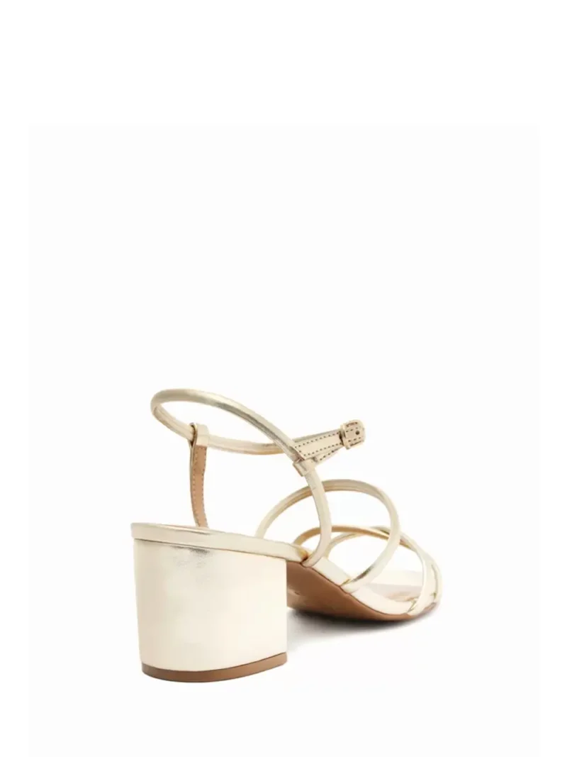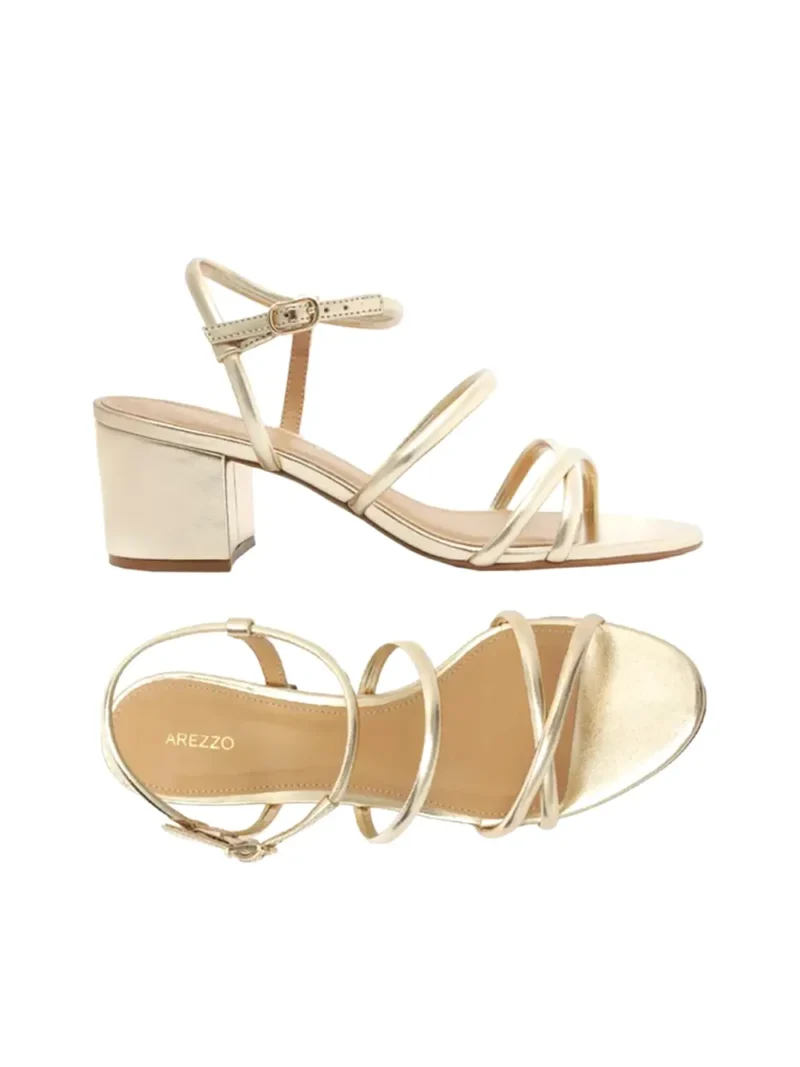 Sandália em pele dourada com múltiplas tiras e salto em bloco. Esta sandália da Arezzo traz consigo a mistura da elegância com as linhas clássicas que enaltecem este modelo.