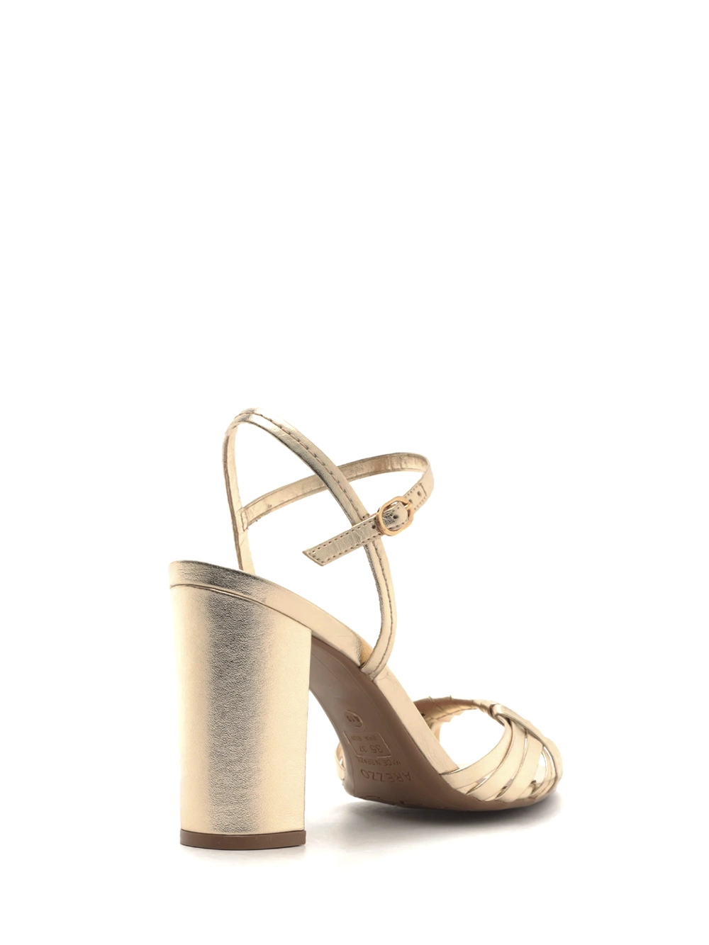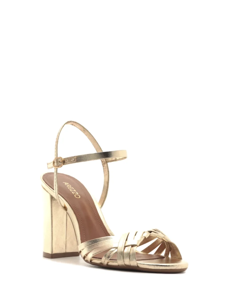 Sandália em Pele Dourada e Salto Bloco