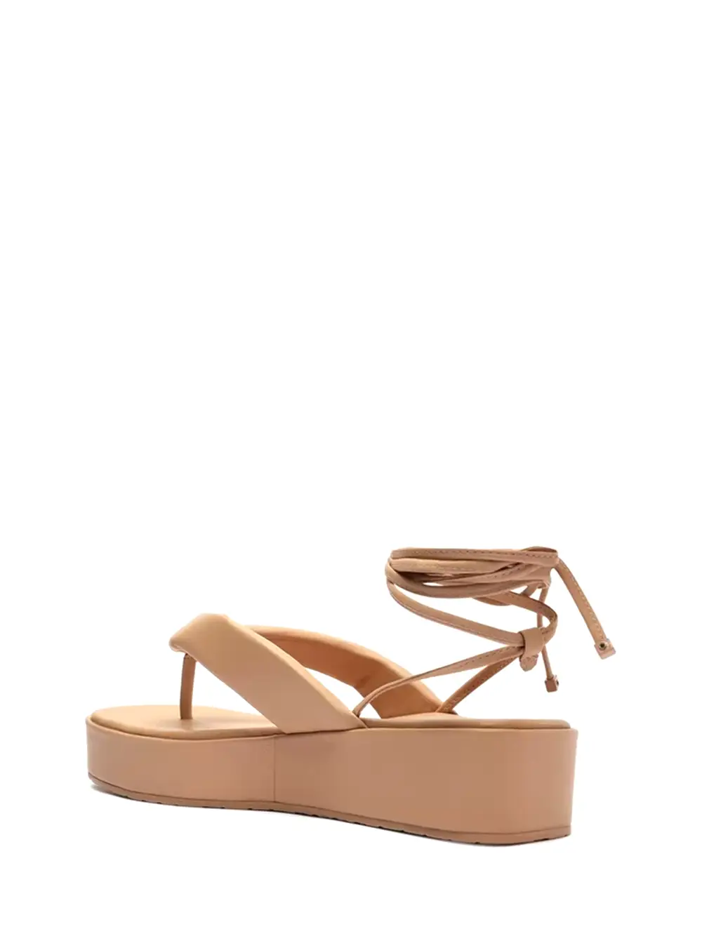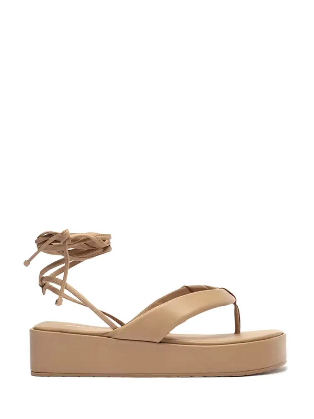 Sandália Plataforma em Pele Castanha e Tira no Tornozelo