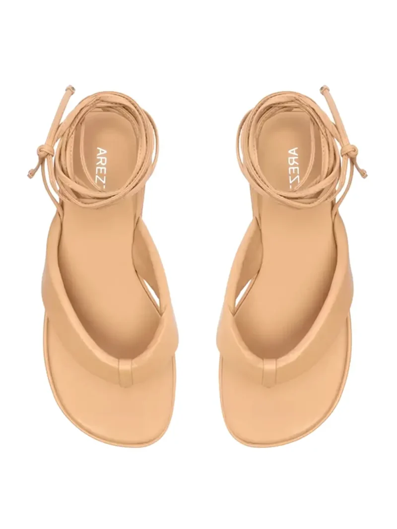 Sandália plataforma em pele castanha e tira no tornozelo. Esta sandália da Arezzo traz consigo a mistura da elegância com as linhas clássicas que enaltecem este modelo.